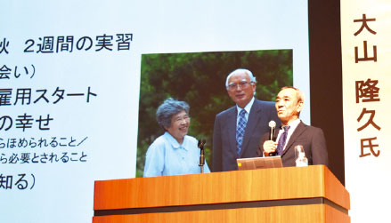 第2部では、大山隆久氏(日本理化学工業(株)代表取締役社長)をお招きし、「働く幸せ実現のために~社員から教わったこと~」と題した記念講演が行われました。