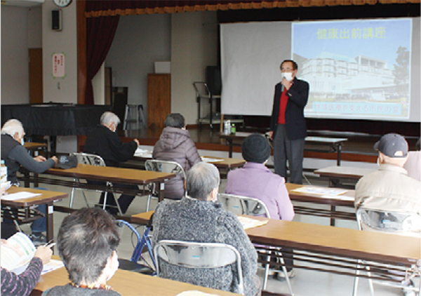 また、脳梗塞などの病気について正しい知識を伝える講座も実施しています。高齢者20名程度を対象に、公民館や老人会、ふれあいいきいきサロンなどで学習会を行うことで、地域への医療の啓発活動を通して、住民同士のつながりづくりの一翼を担っています。市社協ボランティアコーディネーターの德岡(とくおか)かなえさんは、「地域住民にとって医療は関心の高いテーマ。地域の暮らしについて考える協議の場としても注目しています。今後も、市民の会と密に連携していきたいです」と語ります。