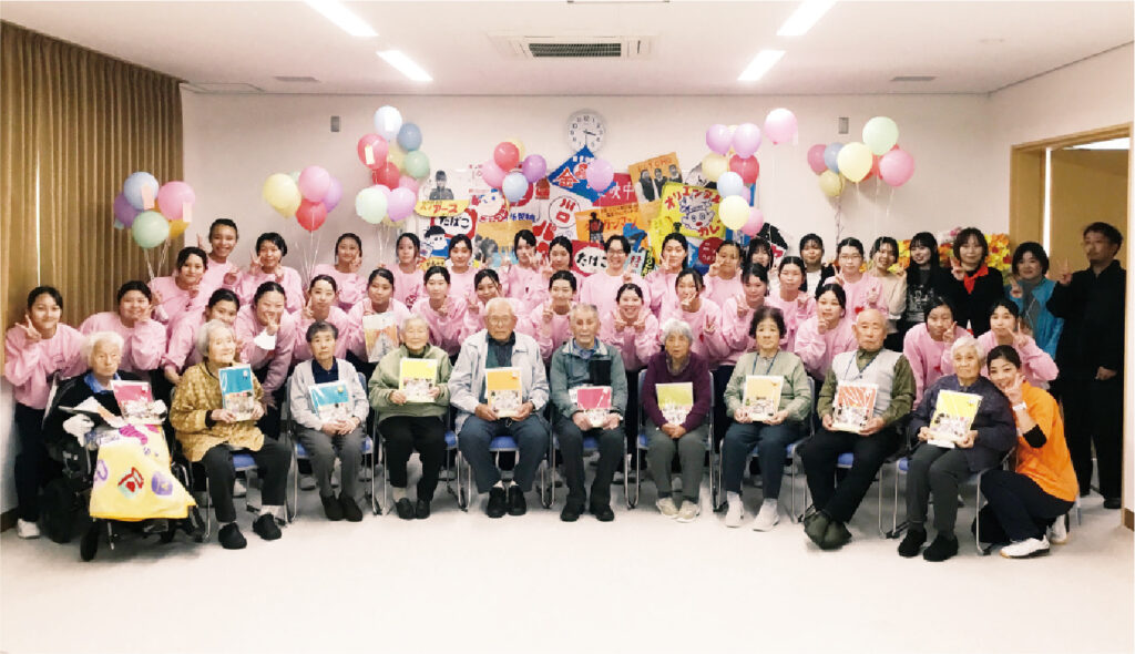 そして高校3年生の11月には、実際に介護サービスを利用している地域の方を学校に招き、レクリエーション・昼食・コーヒータイムなどを通して1日を楽しんでもらう「学校デイサービス」を実施しています。