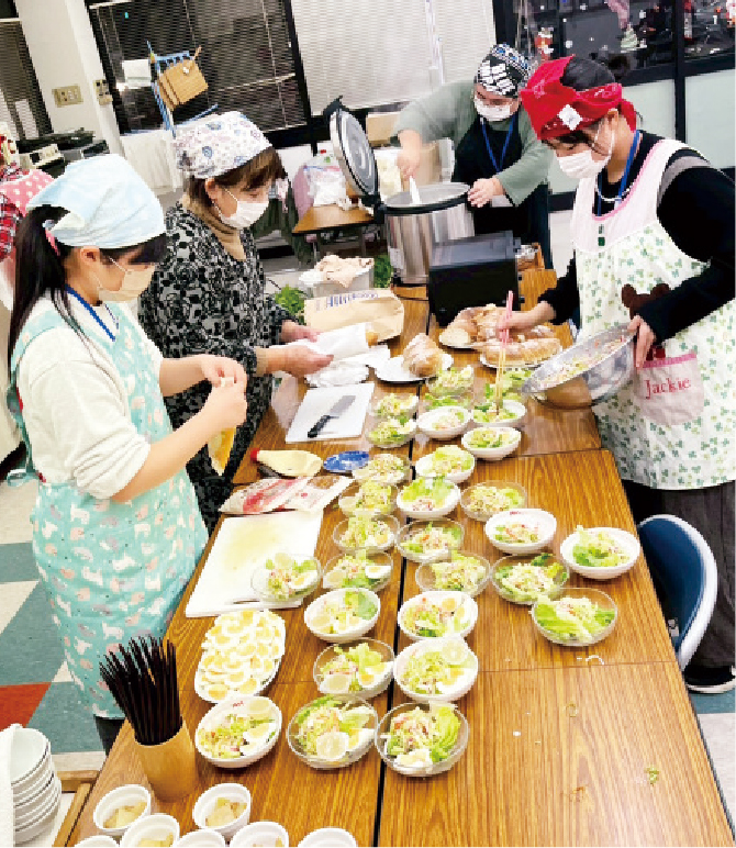 宮永さんはこの活動をヒントに、年代を問わず集える居場所として、地域食堂「みんなの台所」を立ち上げました。当初は場所を転々としての開催でしたが、コープこうべの協力で定例の開催場所を確保できました。また、地元の農園などから食材も提供され、ボランティアや高校生が開催に協力するなど、その名のとおりみんなでつくる居心地の良い空間になっています。